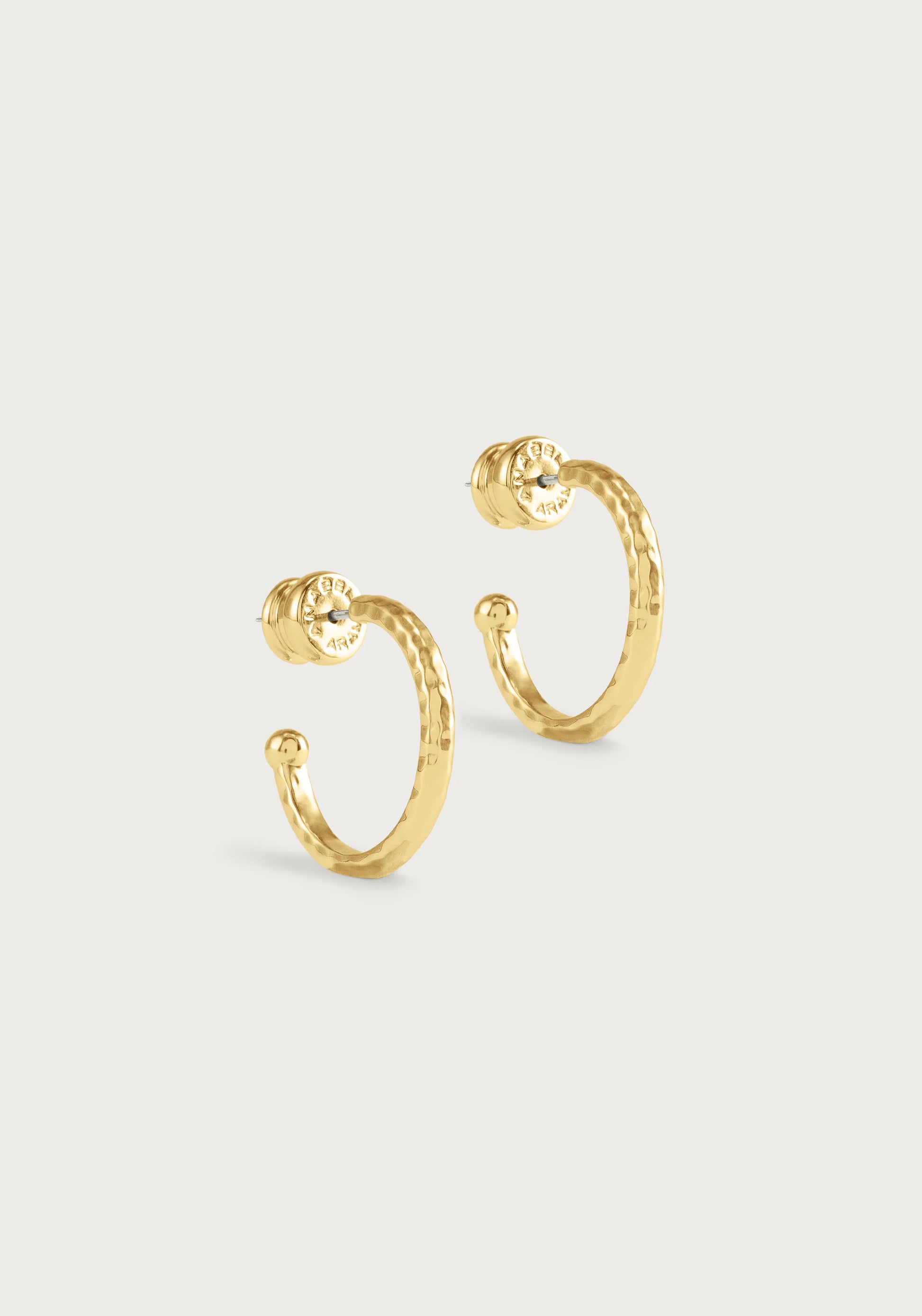 The Farrier Charm Hoop Earrings in Medium is a stunning piece crafted from 18k gold plated brass, designed to add our colorful earring charms to. Each earring features a distinctive hammered texture, echoing the artisanal marks left by a blacksmith's hammer, which gives the exterior a unique, tactile surface. These medium-sized hoops are versatile, perfect for making a statement in both everyday wear and special occasions.