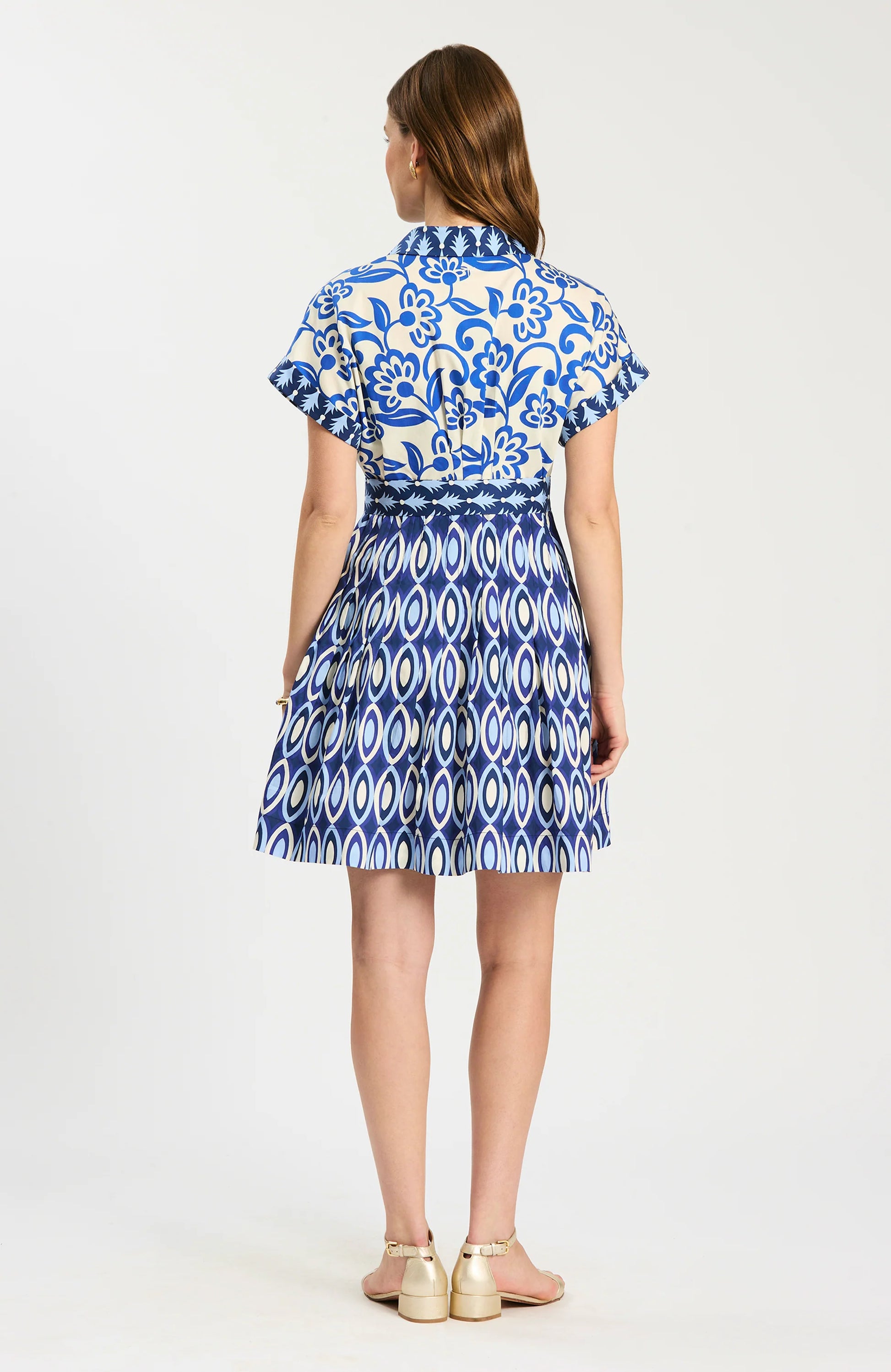 A playful yet polished warm-weather dress designed to stand out, the Hailey dress features a bold mixed blue print with a classic collar and easy button-front styling. Finished with a flattering tie-waist and functional pockets, this dress offers comfort without sacrificing style. Perfect for warm-weather events, weekends, and vacation days, it pairs beautifully with sandals or wedges for an elevated seasonal look.