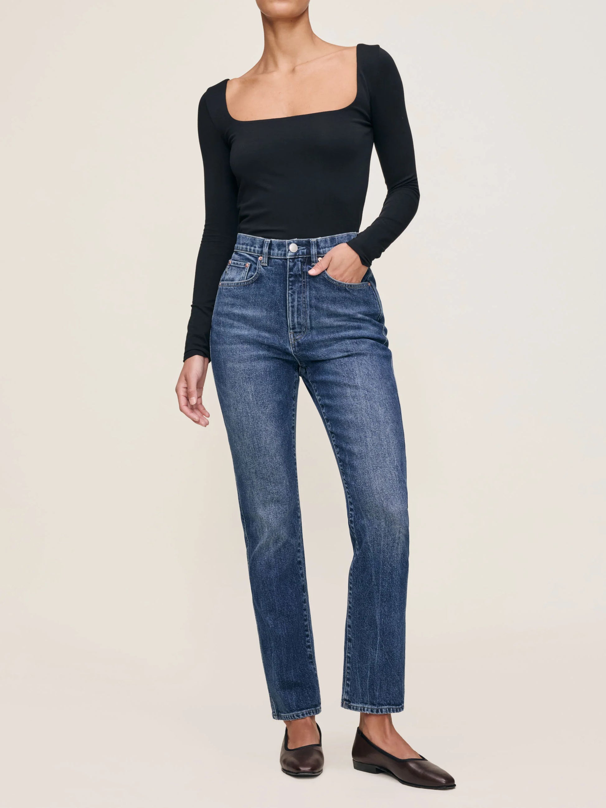Kristy is a high rise cigarette with a 29' inseam designed to taper the leg. It's slim silhouette will easily become your new wardrobe staple.