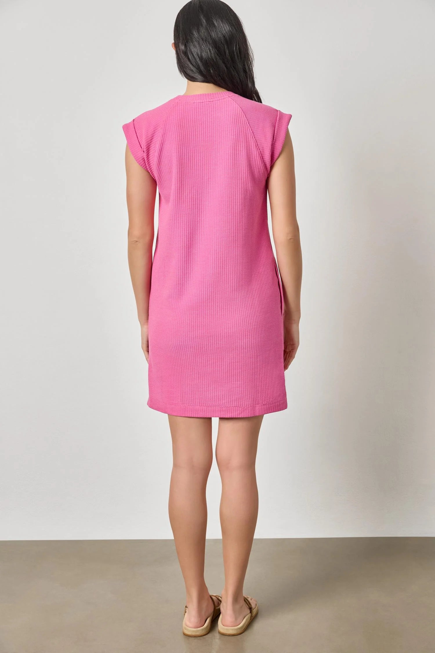Our Saddle Sleeve Shift Dress in Textured Waffle is the ultimate throw-on-and-go shape for the season ahead. With an above-the-knee length, this simple shift silhouette has a crew neckline, extended short sleeves, and side pockets for added ease. A twill tape tab at the hem adds a thoughtful detail to this everyday favorite.